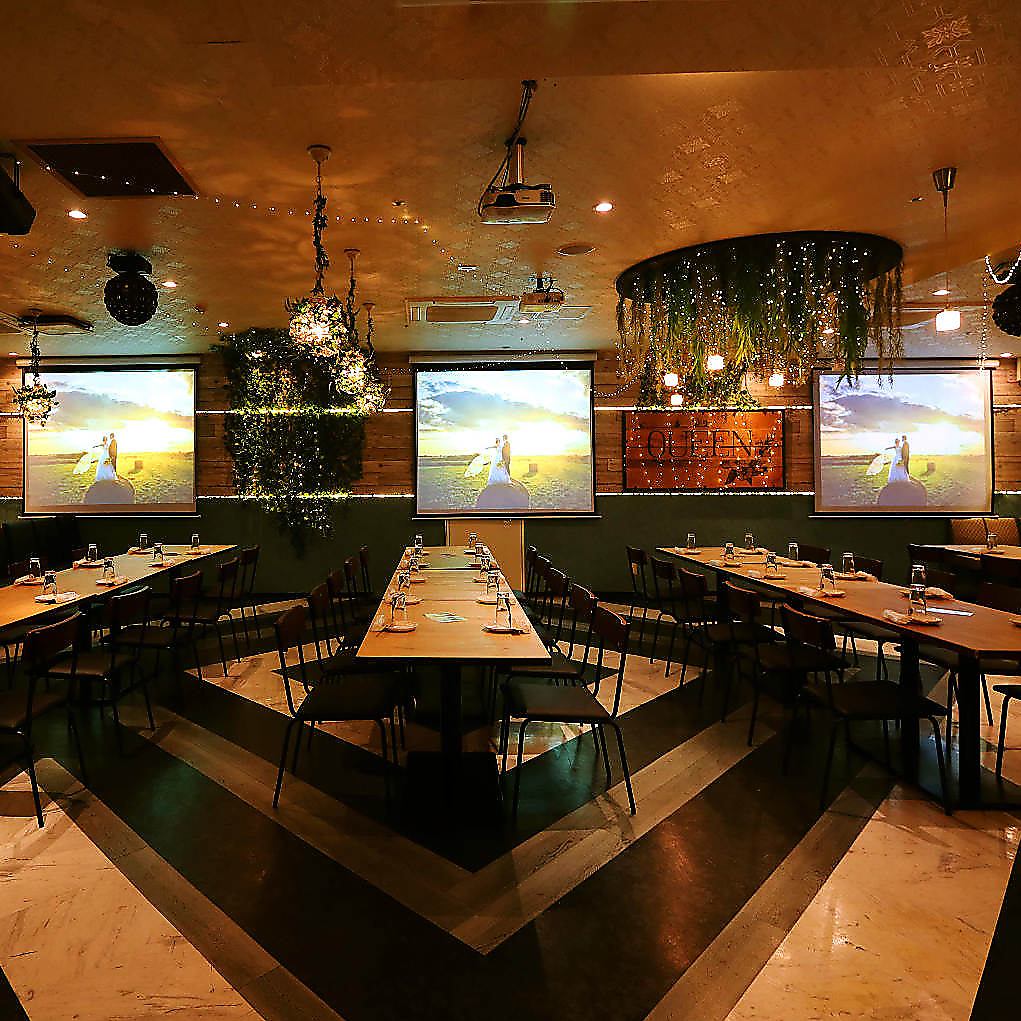 貸切ができる広い会場で60~160名様までの大型貸切パーティーが叶います!駅直結でアクセスも抜群♪結婚式二次会や特別なイベントなどに是非ご利用ください!ご相談もお気軽に受け付けております★映画館のような広い会場を貸切にすれば、思い通りのパーティが出来るかも?思い出に残る素敵なひとときをお過ごしください♪